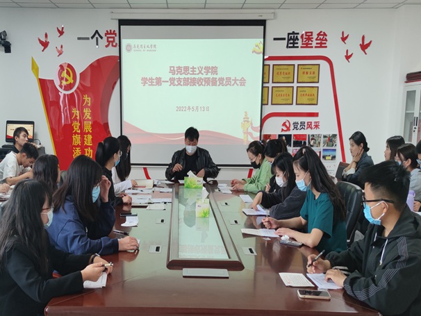 2022年5月13日,我院于明园3-A502党员之家召开学生第一党支部接收预备党员大会,校党委组织部组织员寿继国和学生第一党支部书记王国辉出席本次会议,本支部全体党员参加本次大会。
