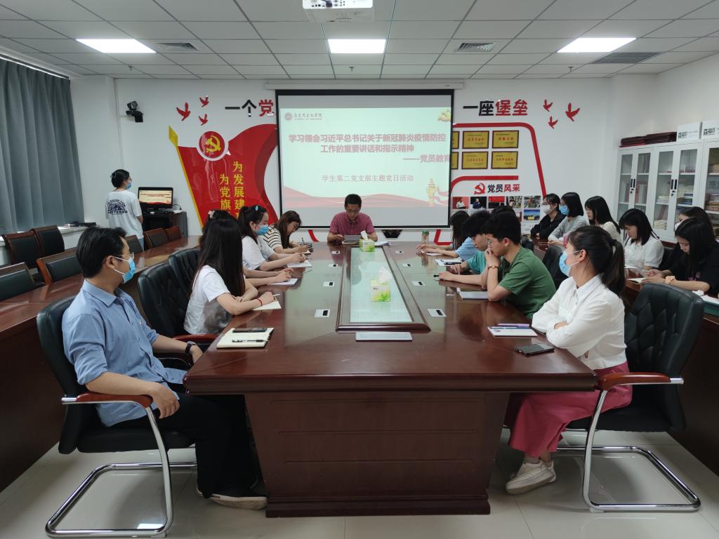 为进一步深入学习习近平总书记关于新冠肺炎疫情防控工作的重要讲话和指示精神,5月6日,我院学生第二党支部在明园3-A502党员之家开展了疫情防控专题学习教育活动,深入学习习近平总书记关于新冠肺炎疫情防控工作的重要讲话和指示精神。活动由党支部书记齐斌尧主持,支部全体党员参加。