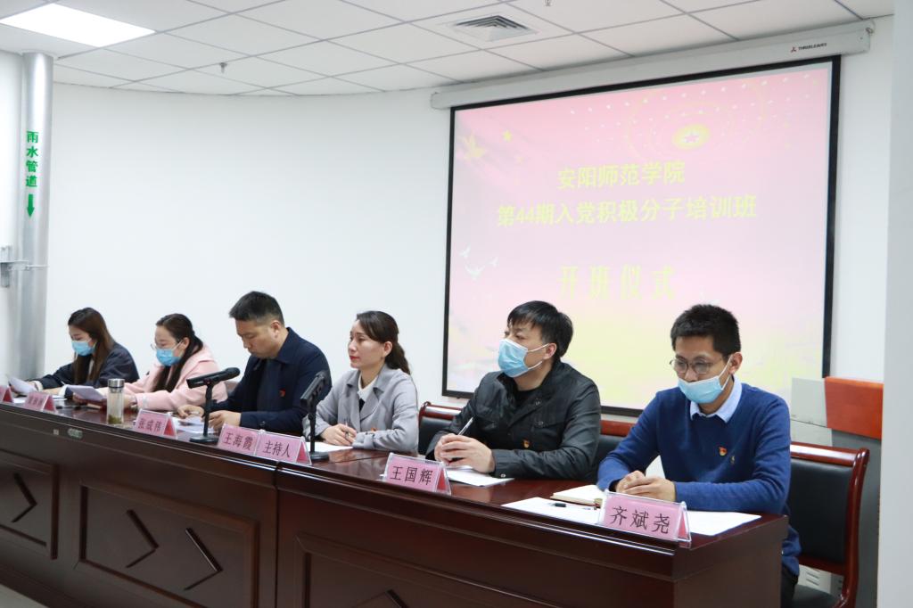 4月7日下午,我院于明园3-A421会议室举行第44期入党积极分子培训班开班仪式。党委书记张成伟、副书记王海霞,学生党支部书记、辅导员、本期培训班全体学员参加开班仪式。会议由党委副书记王海霞主持。