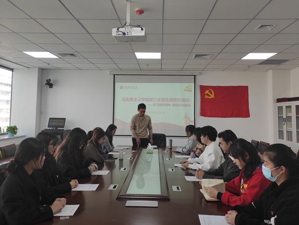 2021年10月27日,我院学生第二党支部于明园3-A502党员之家开展“学习榜样精神,担当历史使命”主题党日活动。本次活动由学生第二党支部书记齐斌尧同志主持,学生第二党支部全体党员参加。