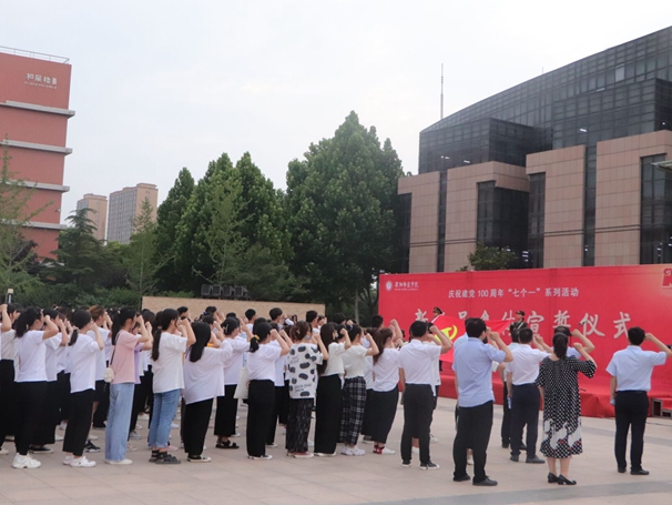 6月24日下午,我校在文鼎广场举行2021年新党员集体宣誓仪式。我院党委书记张成伟及全体新发展预备党员参加此次仪式。