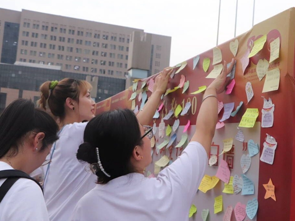 最后,由我院学生邓彦搏代表新党员发言,他提到:“作为一名学生党员无论是在学习、工作、还是生活中都要严以律己,时刻规范自己的行为,不忘初心、牢记使命,用奋斗进取书写青春华章!”会后,我院新发展党员在“表白墙”上粘贴了对建党百年的祝福语,由此表达自己对党的美好祝愿。