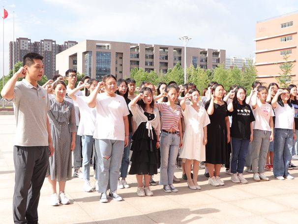 2021年6月5日上午,我院于文鼎广场组织开展了毕业生党员重温入党誓词活动。出席本次活动的是党委副书记王海霞同志、学生第二党支部书记齐斌尧同志和全体毕业生党员。