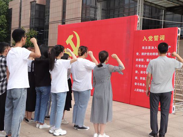 活动伊始,由王海霞同志发表讲话,她提到:“希望各位毕业生党员牢记入党誓词,增强党员意识,强化党性观念,自觉遵守党的纪律和政治规矩,用党章这面镜子,经常进行自我教育,自我提高,牢固树立正确的世界观、人生观、价值观。”随后,在王海霞同志的带领下,全体毕业生党员举起右拳,面向党旗,进行了庄严的入党宣誓。