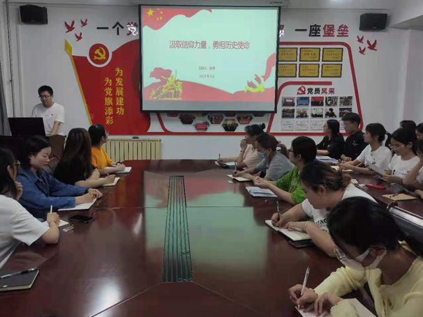会议伊始,张珅同志指出要用党的奋斗历程和伟大成就鼓舞斗志、明确方向,用党的光荣传统和优良作风坚定信念、凝聚力量,用党的实践创造和历史经验启迪智慧、砥砺品格,勇于担当历史使命。接着,与会党员展开了关于“当代大学生如何勇担历史使命”的讨论。其中,学生党员刘芊芊说道:我们要在学习党史的过程中汲取信仰力量,在解放思想中统一思想,在深化认识中提高认识,贯彻落实思想自觉和行动自觉,坚定信仰,为实现中华民族的伟大复兴而努力奋斗。”
