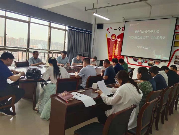 5月25日下午,我院在逸夫楼1028会议室召开“我为群众办实事”实践活动安排部署会。学院全体教工党员参加会议,会议由学院党委副书记王海霞主持。