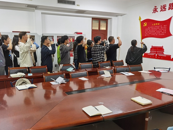 2021年5月11日,我院于逸夫楼1028党员之家召开新党员入党宣誓大会。出席本次大会的是学生第二党支部书记齐斌尧同志和此次发展的29名预备党员。此次会议由齐斌尧同志主持。