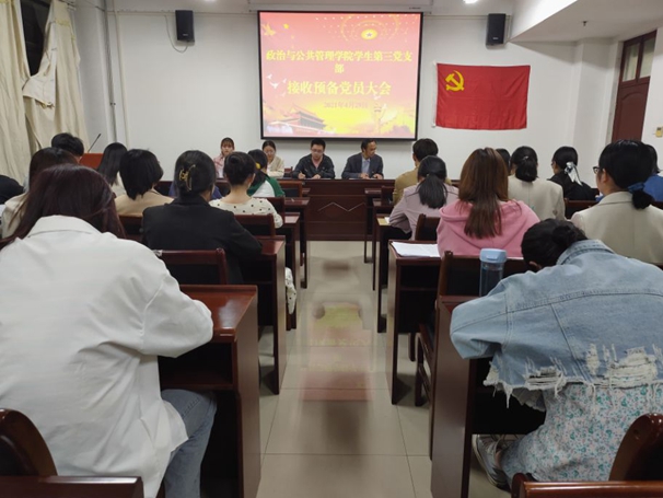 2021年4月29日,我院于逸夫楼1129会议室召开学生第三党支部接收预备党员大会,校党委组织部组织员寿继国和学生第三党支部书记张珅出席本次会议,本支部全体党员参加本次大会。