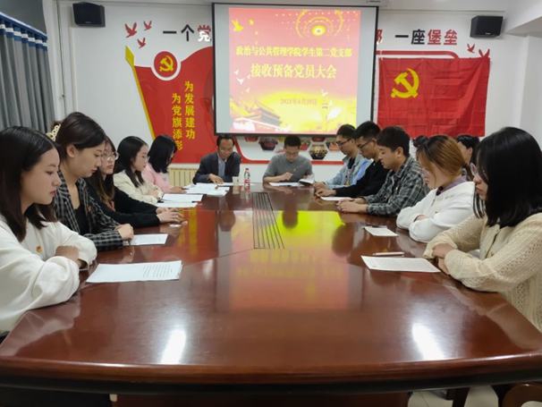 2021年4月29日,我院于逸夫楼1028党员之家召开了学生第二党支部接收预备党员大会,校党委组织部组织员寿继国和支部书记齐斌尧出席会议,支部全体党员参加此次会议。