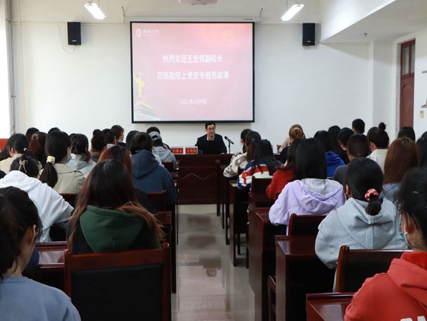 为迎接建党100周年,深刻把握党史学习教育重点。2021年4月9日下午,由王宏伟校长主讲、我院党委副书记王海霞主持,于逸夫楼1129会议室给学生党员上了一节党史学习教育党课。我院全体学生党员参加。