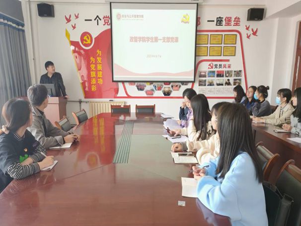 2021年4月7日上午,我院学生第一党支部书记王国辉同志以“为什么要学习党史”为题,于逸夫楼1028党员之家为学生第一党支部上了一次生动的党课。学生第一党支部全体成员参加。