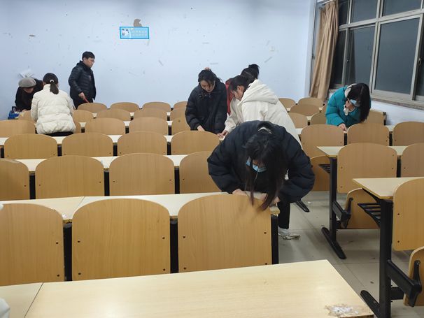 2020年12月16日下午,我院组织部分学生党员在和展楼B102开展以“弘扬奉献精神,守护课桌清洁”为主题的党日活动。