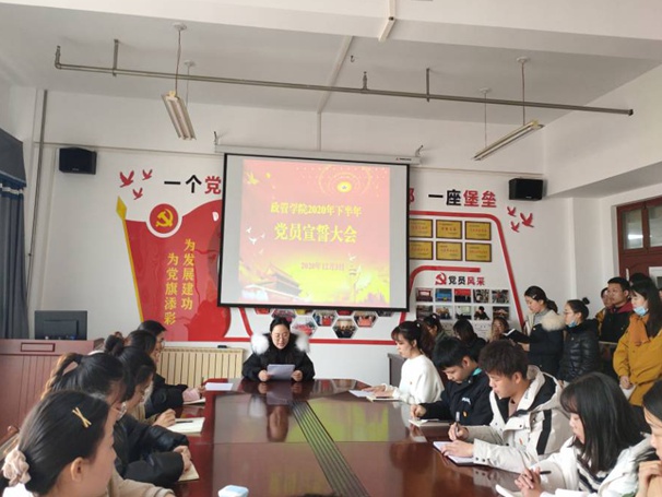 2020年12月3日,我院于逸夫楼1028党员之家召开新党员入党宣誓大会,出席本次会议的是学生第二党支部书记黄琳琳同志和新发展的47名预备党员。此次会议由黄琳琳同志主持。