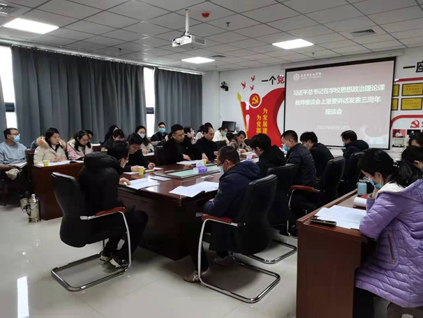 为进一步提升思政课教师教研能力,3月18日下午,我院在明园校区3A502会议室召开习近平总书记在学校思想政治理论课教师座谈会上重要讲话发表三周年座谈会。会议由学院党委书记张成伟主持。
