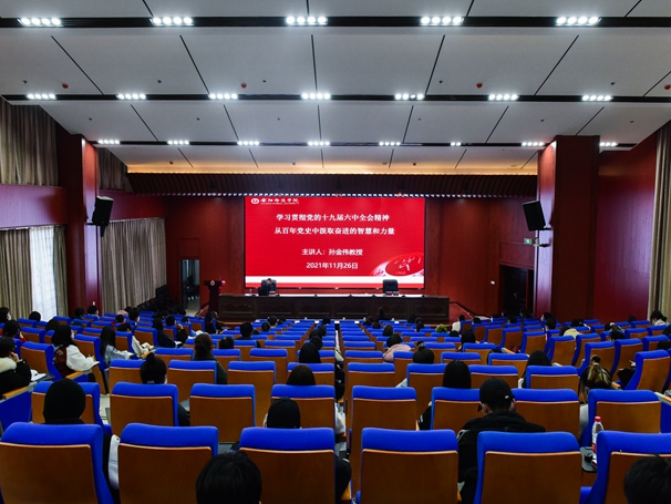 孙金伟以《学习贯彻党的十九届六中全会精神 从百年党史中汲取奋进的智慧和力量》为题,从“准确领悟党的重大成就和历史经验”、“弘扬党的伟大精神和赓续革命红色基因”、“从百年党史中汲取奋进的智慧和力量”等三个方面,用深入浅出的语言和大量事例数据,对党的十九届六中全会精神进行了深入解读和深刻阐释。