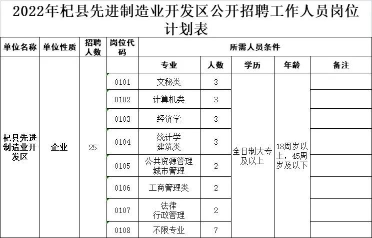 本次计划招聘25名工作人员。具体招聘专业、岗位、人数及要求详见《2022年杞县先进制造业开发区公开招聘工作人员岗位计划表》。