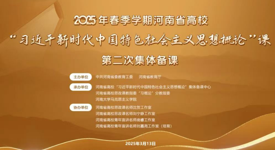 为深入学习贯彻党的二十届三中全会精神,坚持思政课建设与党的创新理论武装同步,进一步提升“习近平新时代中国特色社会主义思想概论”课的教学质量,促进教师之间的教学经验交流与资源共享,省委教育工委、省教育厅于3月13日15:00举办2025年春季学期河南省高校“习近平新时代中国特色社会主义思想概论”课第二次集体备课会,“习近平新时代中国特色社会主义思想概论”教研室全体教师以线上观看的形式进行了观摩和学习。