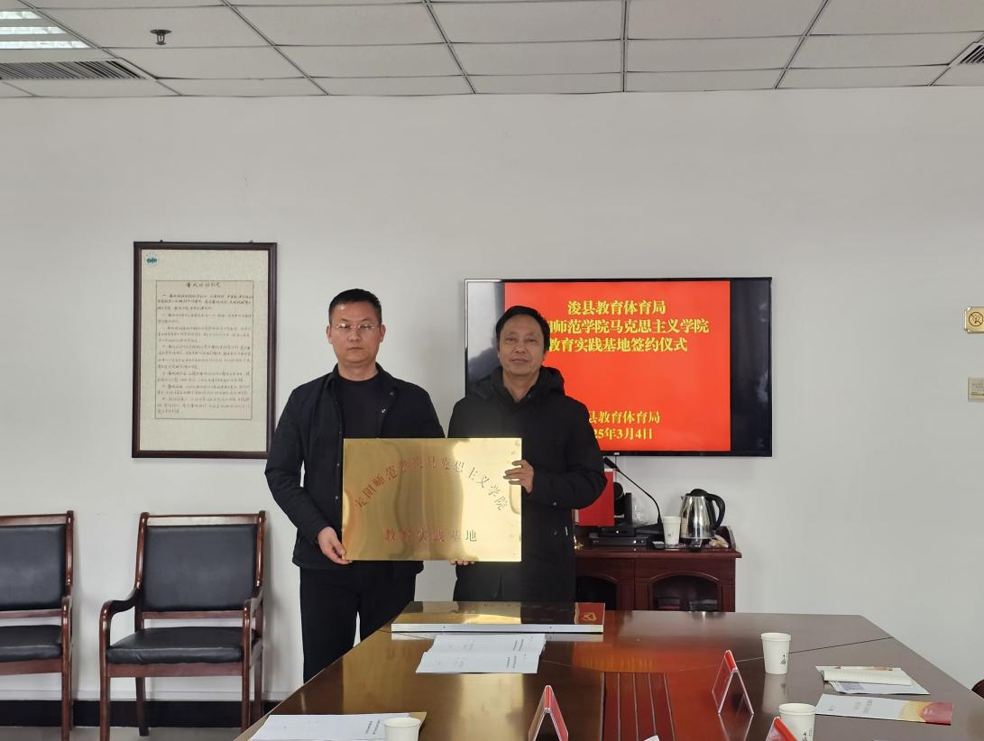 为强化实践教学,向学生提供更广阔的实习实践平台,3月4号下午,我院与鹤壁市浚县第二高级中学、浚县实验中学举行教育实践基地签约挂牌仪式。我院院长胡运锋、副院长万晓飞、带队老师王金良、鹤壁市浚县教体局局长黄建太、副局长杨自峰、浚县第二高级中学校长丁文喜、浚县实验中学校长刘海军、浚县第三高级中学陈存磊、浚县第二实验中学徐冰以及2021级赴浚县开展教育实习的实习生等等共同出席了签约暨揭牌仪式。