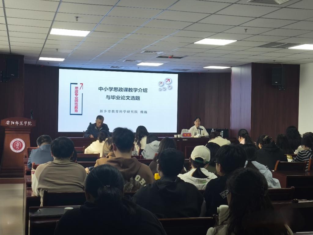 3月26日,新乡市教育科学研究院副院长、河南省中原教学名师魏巍应邀在学院421会议室作了题为《中小学思政课教学介绍与毕业论文选题》的专题讲座。讲座由学院副院长娄本东主持,部分研究生导师和全体研究生参加。