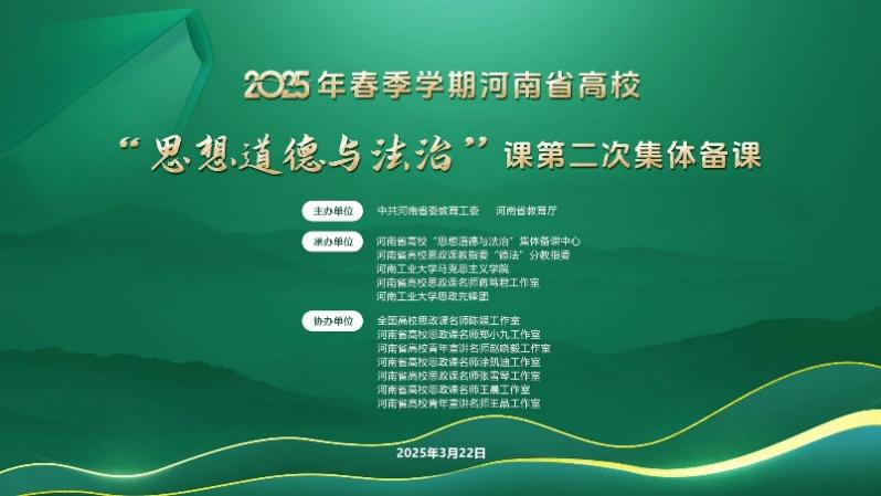 4月11日上午9;00,德法教研室组织全体教研室教师在线观看了由省委教育工委、省教育厅举办的2025年春季学期河南省高校“思想道德与法治”课第三次集体备课直播活动。