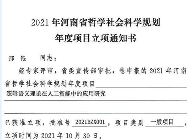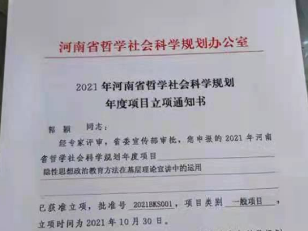 近日,2021年度河南省哲学社会科学规划项目评审结果公示,我院郭颖博士主持的“隐性思想政治教育方法在基层理论宣讲中的应用”、邢锟博士主持的“逻辑语义理论在人工智能中的应用研究”以及常县宾博士的“鄂豫皖苏区社会治理研究”获批立项。