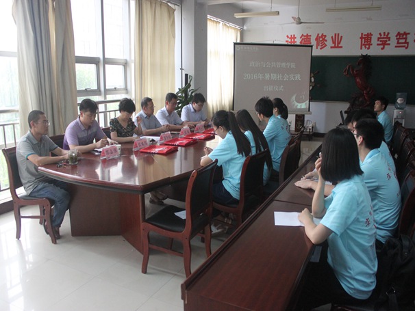 7月10日下午,我院隆重举行2016年暑期社会实践出征仪式。院党委书记罗令姣、院长张晴、党委副书记张成伟、副院长胡运锋、分团委副书记甄丹东及教学秘书邵志强老师出席本次大会,我院2016年暑期社会实践所有团队成员参加大会。大会由张成伟老师主持。
