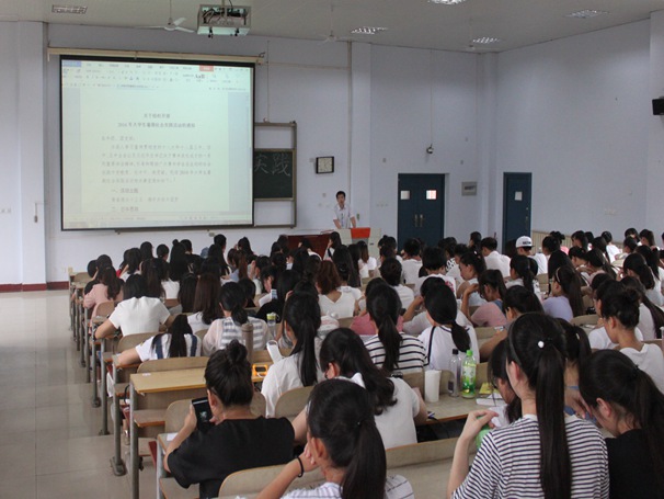 6月19日下午,我院于理阶301召开2016年暑期社会实践动员大会。13、14级全体学生参加了本次大会,分团委副书记甄丹东老师出席并主讲。