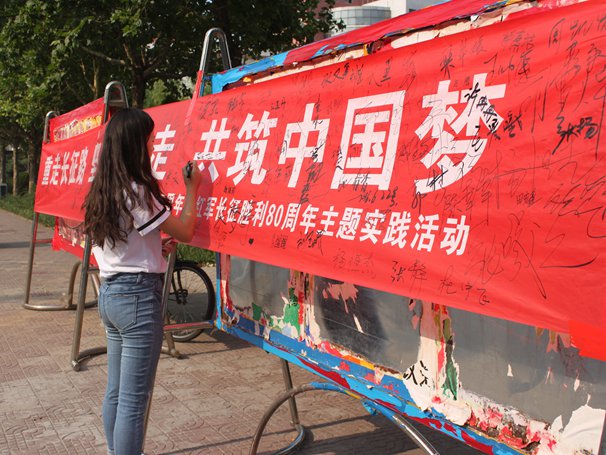 据悉,我院还将开展“走进烈士陵园”、“快闪”和理论宣讲等系列活动,来庆祝建党95周年与红军长征胜利80周年。本次活动也是我院暑期社会实践的开端,后期还将走进社区、农村、公园、街道开展活动,在实践中引导广大青年学生学党史、知党情、跟党走,不断增强党性修养,培养勇往直前、坚韧不拔的长征精神,将青春自觉投入到实现中华民族伟大复兴的中国梦当中去。