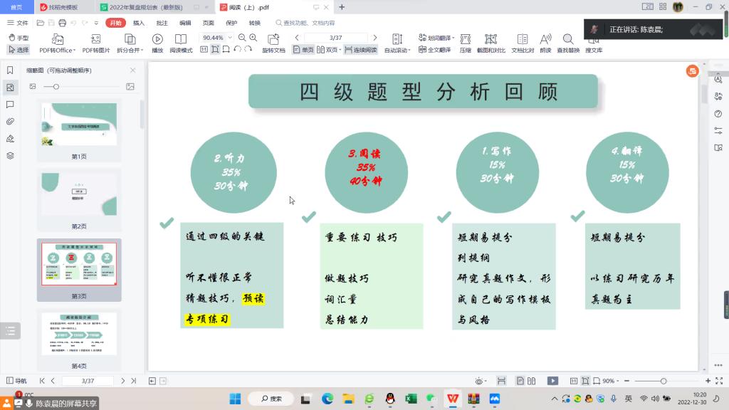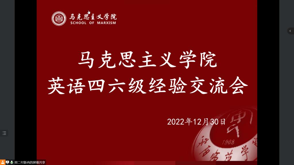 为进一步提高我院学生英语四六级考试水平,12月30日上午,我院于线上举行的英语四六级经验交流会。本次交流会特邀在英语四六级测试中的优秀考生分享经验与考试心得,21、22级部分学生参加。