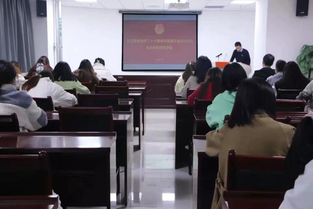 为了学习贯彻党的二十大精神,使我院青马学员坚定理想信念,把红旗渠精神内化于心,11月20日,我院于明园3-A421开展了以“青年建功新时代,红旗渠精神永传承”为题的宣讲活动。本次宣讲活动由我院教师宣讲团成员齐斌尧主讲,我院全体青马学员参加。