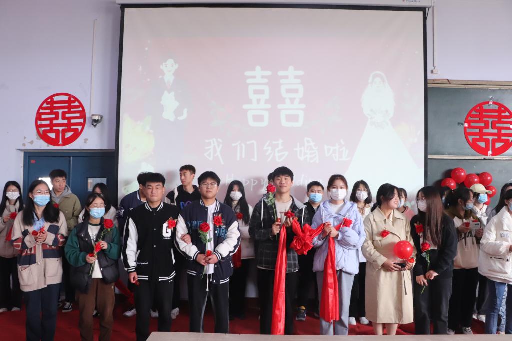 “婚礼”环节工作人员安排了中式和西式婚礼,进行宣誓、拜天地、喝交杯酒等环节。通过这些让同学们更加真切地体验从登记结婚到婚礼嫁娶到承诺证婚,一步一步走向婚姻殿堂的神圣感。在“孕育”环节,工作人员给体验者在腹部填满气球,通过系鞋带、擦桌子、捡东西等动作,让体验者意识到母亲十月怀胎的辛苦以及生命的来之不易。“残障”环节是用眼罩蒙住体验者的眼睛,通过画画、过障碍物、摸物识物等方式体验残疾人的日常行动,通过切实体验,感悟理解残障,体验残障人生。在“死亡”环节,体验者按照工作人员的指引,深呼吸、闭上双眼,设想自己正在面对死亡,工作人员引导体验者慢慢回想自己的一生。最后,我院学生将自己的感悟写到卡片上与周围同学分享。