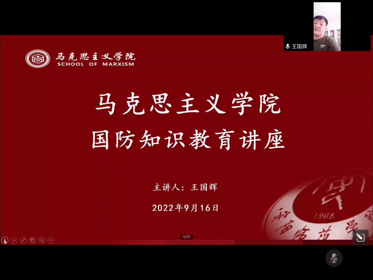 国无防不立,民无兵不安。为弘扬爱国主义精神,普及国防教育,使新生增强国防观念,9月16日上午,我院于线上召开国防知识教育讲座。讲座由学工办主任王国辉主讲,22级全体新生参加。
