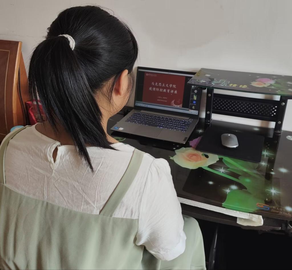 讲座中,杜梦洁对学校发布的暂缓返校说明进行了阐释,她指出当前全国多地仍在持续爆发疫情,希望同学们耐心等待,时刻关注学校动态,切勿私自返校。接着,她强调了返校所需的条件,告诫同学们返校前要严格遵守当地疫情防疫政策,做到不扎堆、不聚集,为返校做好准备工作。最后,她希望同学们在家做好个人防护,保障自身安全,期待早日与同学们在校园里相见。