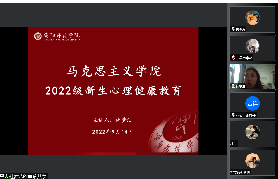 为引导2022级新生尽快适应大学生活,保持积极乐观的心态,9月14日,我院2022级辅导员杜梦洁于线上开展新生心理健康教育讲座。