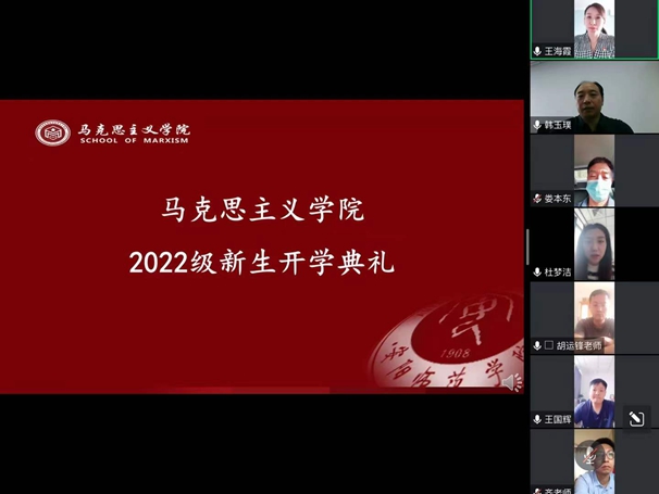 9月14日上午,我院于线上召开2022级新生开学典礼暨开学第一课。党委书记张成伟、院长韩玉璞、党委副书记王海霞、副院长胡运锋、副院长娄本东、2020级辅导员王国辉、2021级辅导员齐斌尧、2022级辅导员杜梦洁以及2022级各班班主任出席本次大会,2022级全体新生参加,会议由党委副书记王海霞主持。