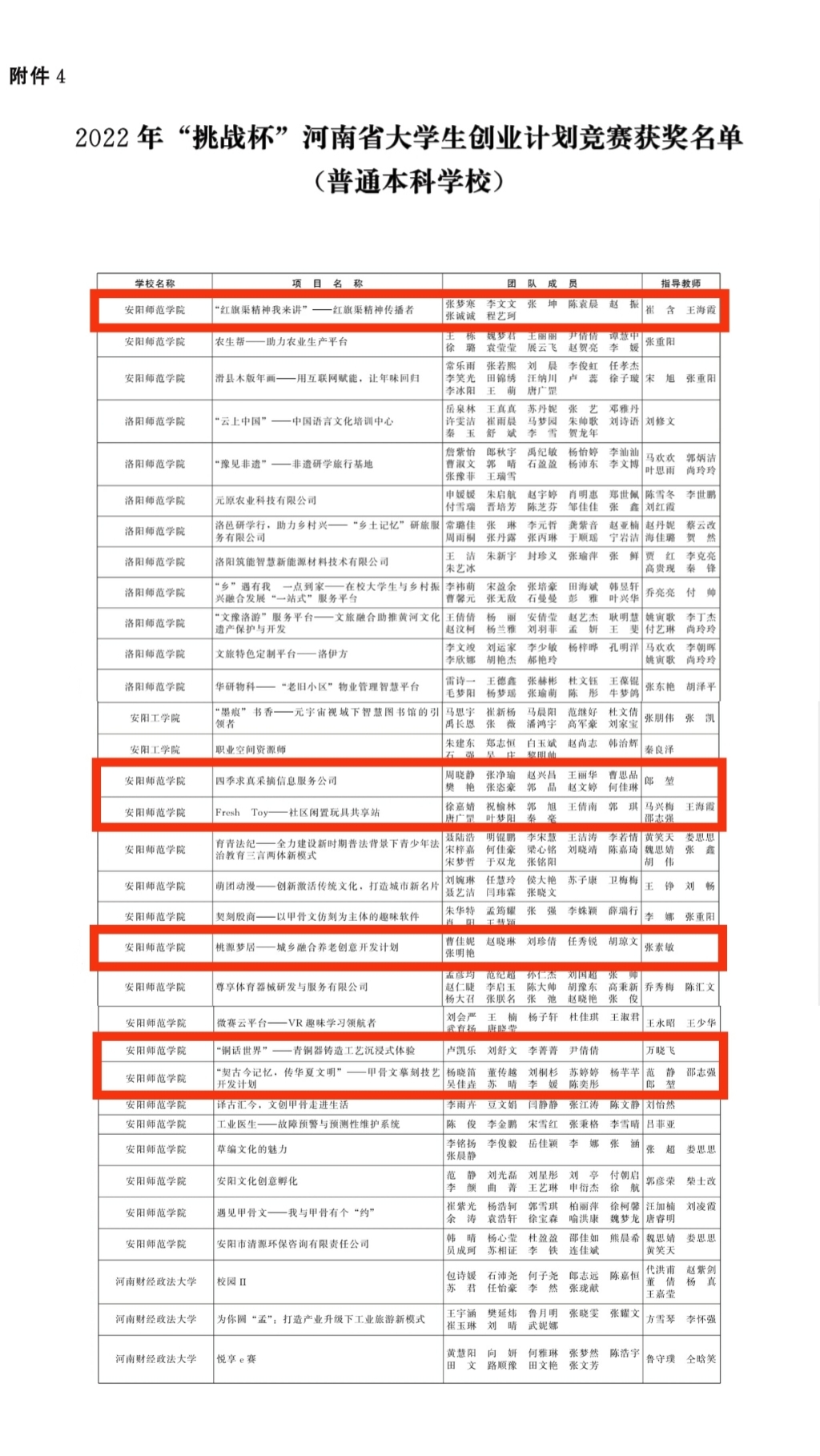近日,由共青团河南省委、河南省教育厅、河南省人力资源和社会保障厅、河南省学生联合会共同举办的2022年“挑战杯”河南省学生创业计划竞赛结果揭晓。我院师生精心组织、积极参与、刻苦钻研,取得了优异的成绩。