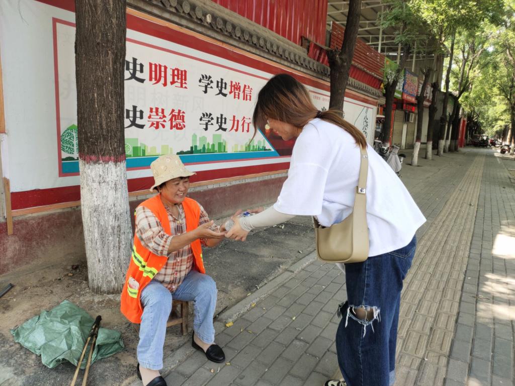 卢冰冰看望了中午仍然顶着烈日在清扫街道的环卫工人们,拿着提前购买的矿泉水送给坐在路边休息的环卫工人们,他们脸上露出了欣慰的笑容。朱少阳参加了社区组织的卫生清扫活动,很累却也让志愿者收获颇多。经过亲身的实践,志愿者们明白了社区和城市卫生环境保持整洁的不易,懂得了环卫工人们不怕苦不怕累的精神。环保是可以从身边做起的一件小事情,日常生活中只需一点点小小的举动,带给地球的却是大大的反响,保护环境从我做起!