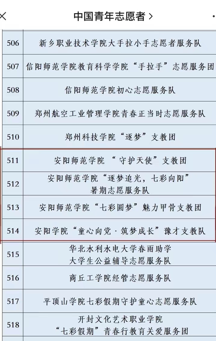 近日,团中央青年志愿者行动指导中心、中国青年志愿者协会秘书处发布了《关于遴选2022年“七彩假期”志愿服务示范团队的公告》,我院“七彩圆梦”魅力甲骨支教团成功入围,被评为2022年“七彩假期”志愿服务示范团队。