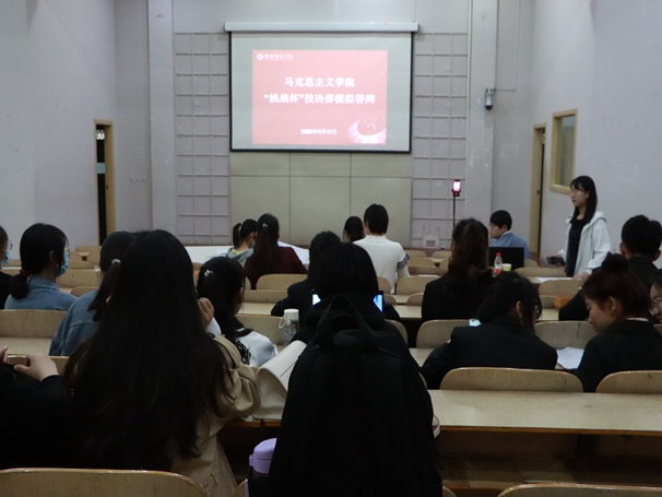 5月11日,我院于和展阶梯102举行挑战杯校赛模拟决赛答辩活动。本次模拟答辩活动由我院党委副书记王海霞、分团委负责人齐斌尧、邵志强老师和范静老师担任评委。