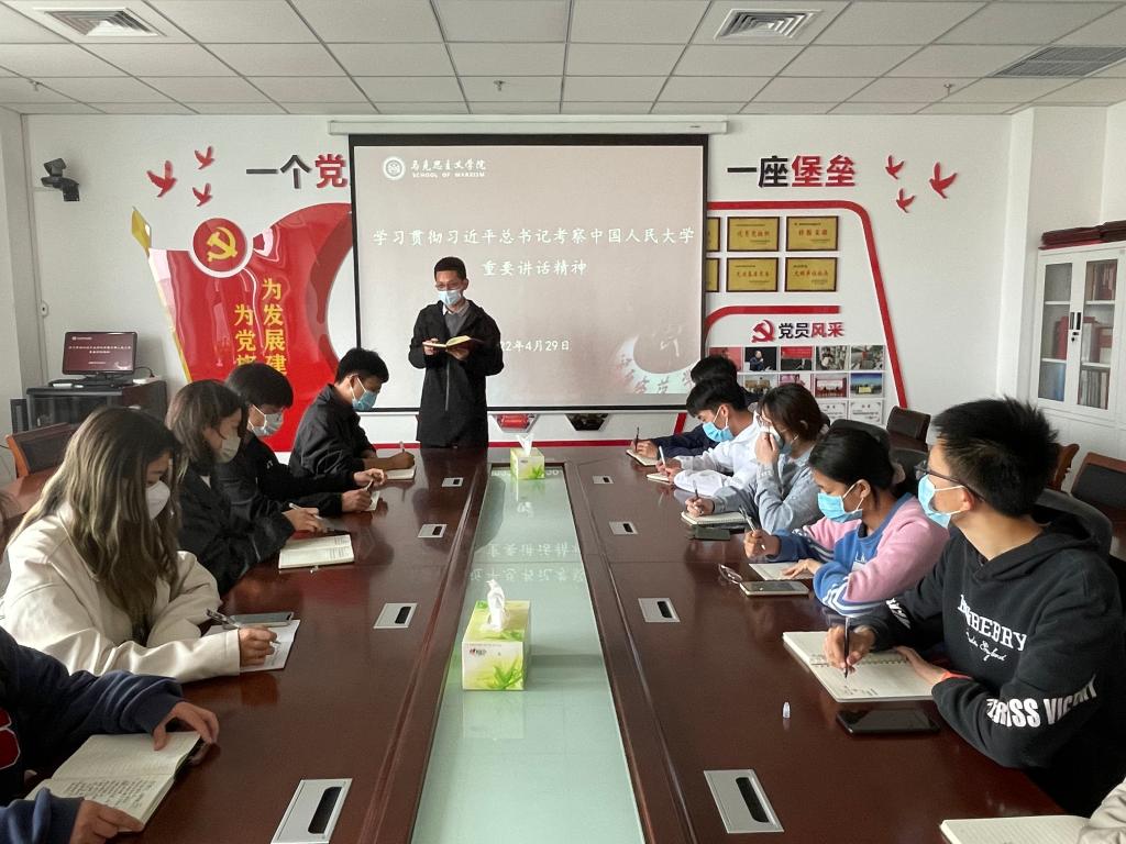 为紧跟时代发展,不断深入学习习近平总书记系列重要讲话精神。我院于4月29日明园3-A502党员之家开展了学习贯彻习近平总书记考察中国人民大学重要讲话精神学习交流会,会议由辅导员齐斌尧主持,我院部分班委参加。