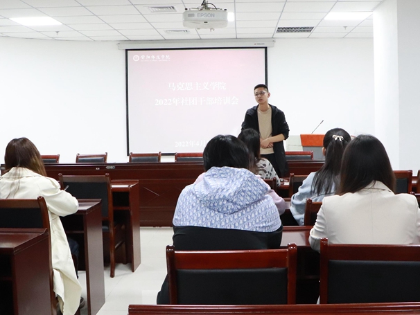 为提高我院各社团干部的政治素质和工作能力,4月13日下午,我院于明园3A-421室召开社团干部培训会。会议由我院分团委负责人齐斌尧主讲,各社团干部参会。