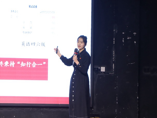 储雪雪以PPT展示的形式首先对团支部概况进行介绍,然后分别从组织建设、制度建设、思想引领、支部特色以及未来展望五个板块阐述支部工作内容。条理清晰,陈述得当,充分展现了支部特色及优良风貌。在答辩提问环节,储雪雪凭借扎实完备的知识储备对评委老师提出的问题做出了精湛回答。