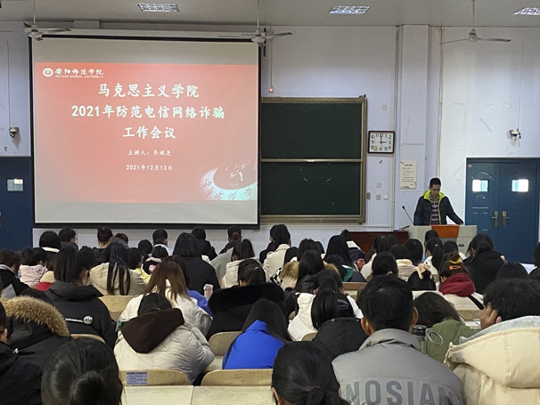 为进一步提高我院学生预防电信诈骗意识,规范考生行为,以诚信的态度参加考试。12月13日下午,于和展阶梯1201为我院2021级新生召开以“防范网络电信诈骗”和“诚信考试”为主题的年级大会,会议由2021级辅导员齐斌尧主讲。