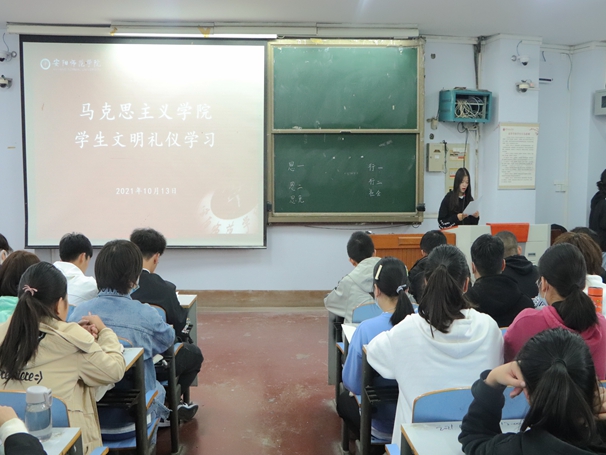 为加强学生在工作中的规范性和合理性,切实提高学生的文明礼仪素质,10月13号上午,我院于和鸣阶梯1303召开学生文明礼仪学习办法讲座。此次讲座由20级办公室负责人李书庆主讲,21级全体新生参加。