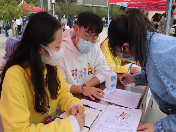 迎新期间,我院领导小组来到大本营视察指导迎新工作。同时,与新生及其家长进行亲切交谈,为他们答疑解惑,让新生和家长对学院有了更深的了解和认识。迎新工作人员与志愿者们坚守在各自的岗位上,对待迎新工作一丝不苟。