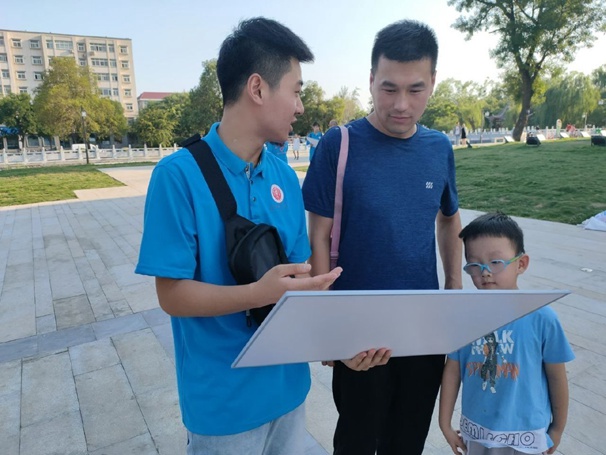 下午四点,实践调研团到达了彰德府。炎炎烈日,却无法影响队员们的宣讲热情。经过几天的锻炼和成长,队员们逐渐放开自己,宣讲能力也有所提高。在宣讲“十四五”规划时,他们结合自己的认识,用简单通俗的语言向广大人民群众传达“十四五”规划重要的民生意义。群众对队员们宣讲的内容纷纷表示认可,这激励了队员们继续将“十四五”规划的具体内容宣讲给更多的人。