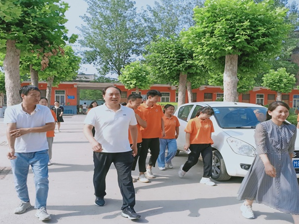 7月10日上午,pg电子官方网站党委书记张成伟书记、院长韩玉璞院长、党委副书记王海霞书记、分团委负责人齐斌尧老师来到安阳县北郭乡南郭村安玻希望小学对在小学进行暑期社会实践的“七彩圆梦”魅力甲骨支教团进行慰问,并给支教团成员带来生活物资。