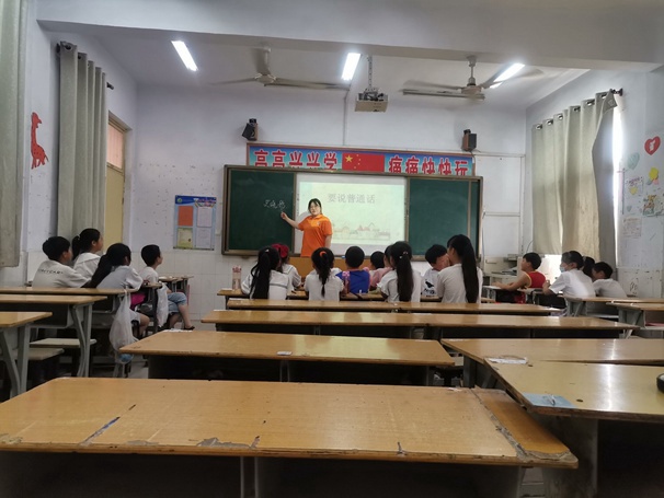 今天,支教部成员给学生们讲述了学习普通话的重要性。普通话对于每个人而言,它都是一种非常有用的语言,它在促进全社会树立语言文字规范意识,推动语言文字工作向纵深发展方面发挥了重要的作用。普通话是以北京话音为标准语音,以北方话为基础方言,以典范的现代白话文著作为语法规范。在课堂上,学生们有模有样的说着不太像的标准话,支教部成员耐心讲解普通话学习要点,课堂活跃有趣。课后,支教部成员将普通话与其他学习内容融合,在辅导功课中将普通话融入实践当中,更好的实现青年人服务学生,服务社会的责任担当。