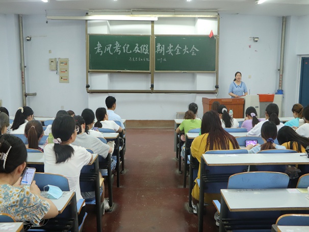 为端正考核,促进学生诚信考试,增强学生的安全防范意识。6月24日中午,我院于和鸣阶梯1201举办诚信考试暨假期安全大会,本次大会由19级辅导员王素静主讲,19级全体学生参加。