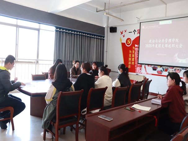 首先,由19级思想政治教育一班的团支部书记菅梦涵做述职报告。报告由“支部简介”、“学习活动”、“团日活动”、“实践活动”和“未来展望”五个部分组成。在此次报告中,她对2020年度团支部工作进行了总结,真切的表达了对于未来支部建设的决心与规划。接着,19级行政管理一班、20级思想政治教育一班和20级行政管理二班团支部书记分别做述职报告。最后,齐斌尧老师对此次报告做最后总结。他对各团支部报告给予了肯定,并指出了报告中的不足之处,同时对支部建设如何进行改进和发展提出了建议和要求。